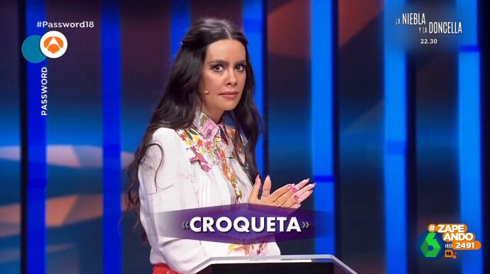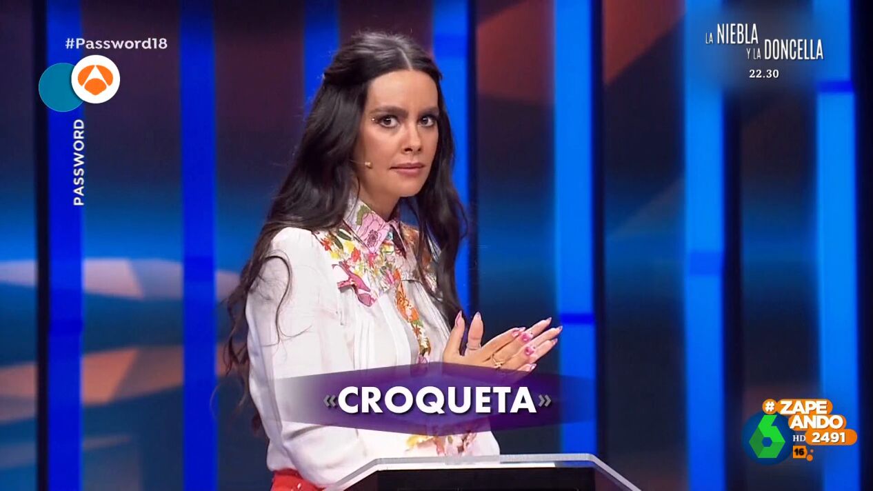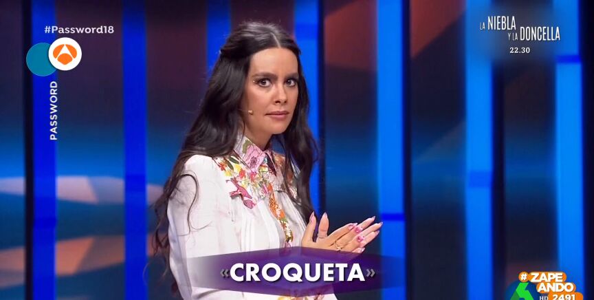 Ona Carbonell y Quique Peinado acuden a 'Password', el programa presentado por Cristina Pedroche, como invitados para ayudar a los concursantes. Una de las palabras que deben adivinar es 'croqueta', pero tras varias pistas, no dan con ella y la presentadora se desespera tras el atril.