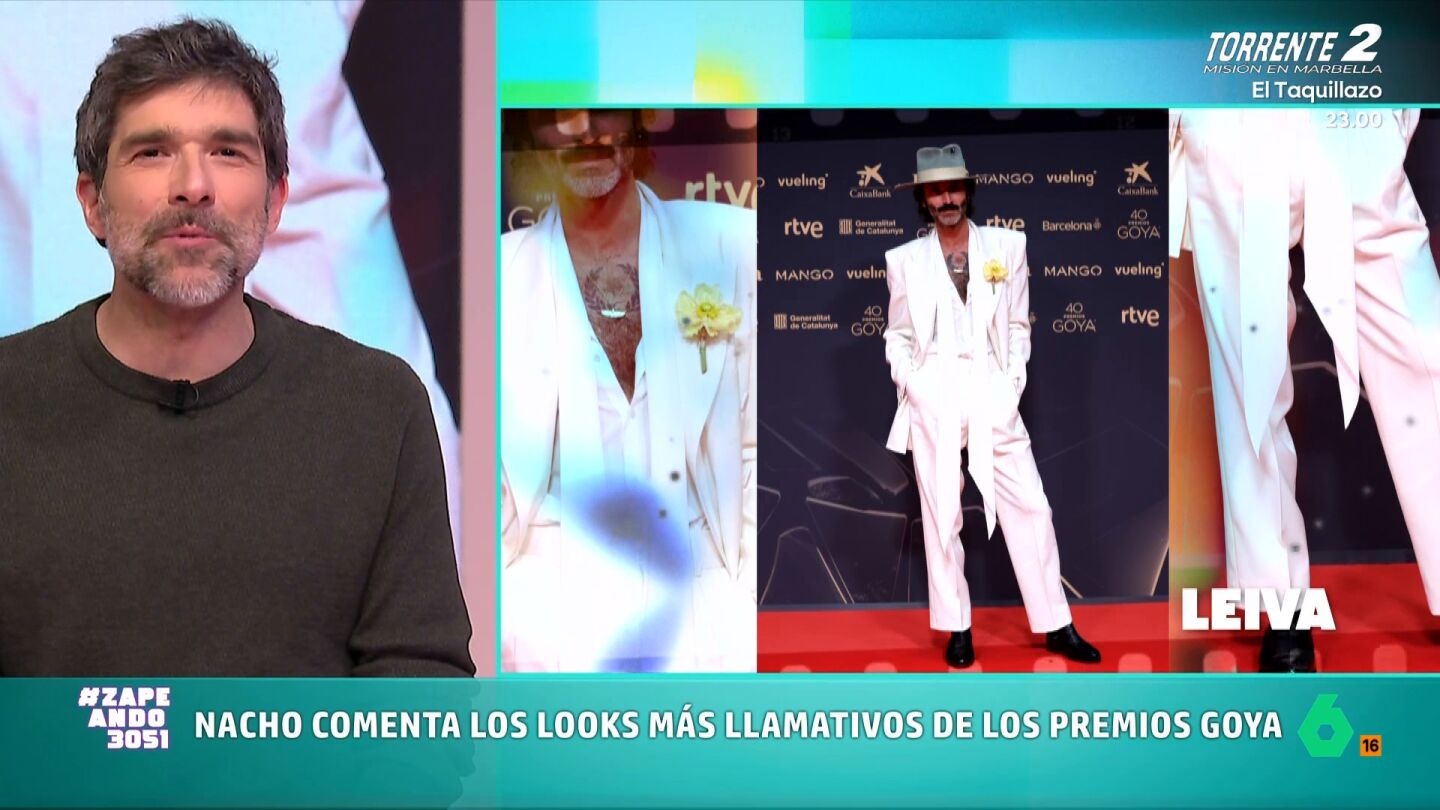 En el caso de Leiva afirma que "iba de Leiva" con un vestuario "que no te sorprende": "Es como Bertín Osborne en 'Tu cara me suena', siempre hace de sí mismo". Un look el del músico que Nacho define como "de gato mafioso en un corto animado".