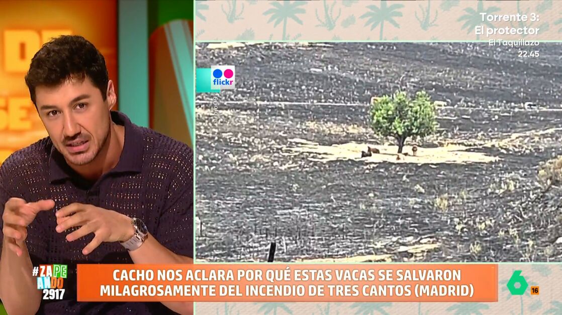 En pleno incendio de Tres Cantos, un grupo de vacas se salvó dentro de un círculo alrededor de un árbol que, misteriosamente, no se quemó. Francisco Cacho explica el motivo detrás de este 'milagro'.