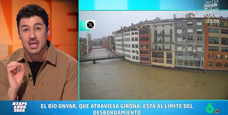 El meteorólogo de laSexta señala que este temporal ha provocado fuertes lluvias que han provocado que, por ejemplo, el caudal del río Onyar haya alcanzado los 700 metros cúbicos por segundo.