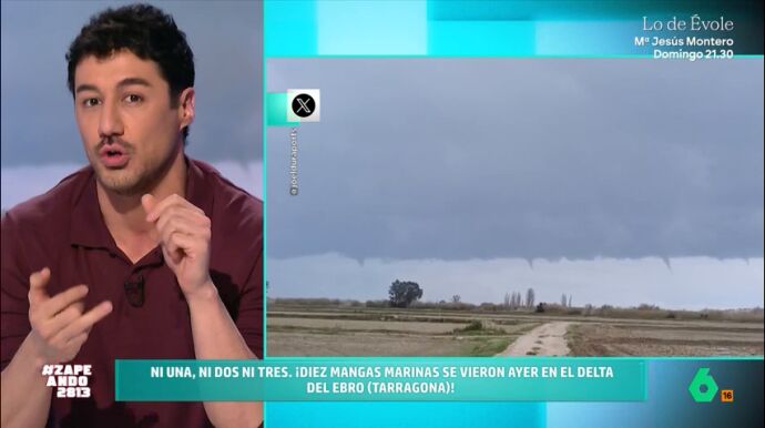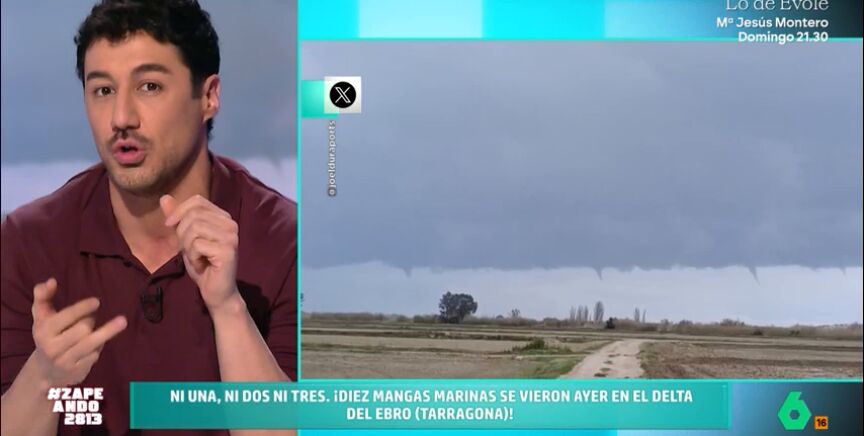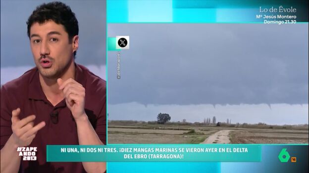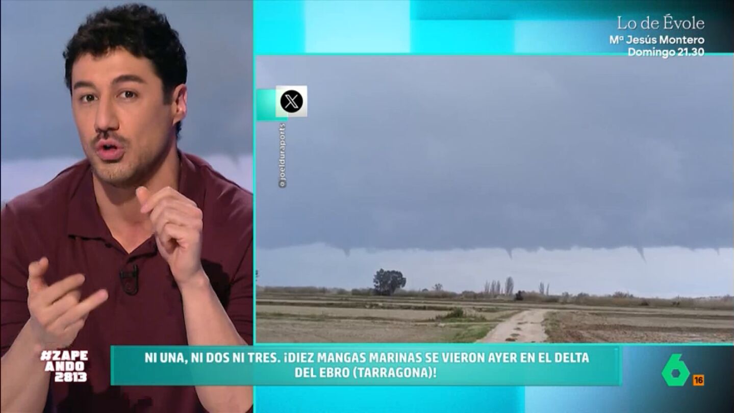 "España, ahora mismo, es un parque de atracciones meteorológico", afirma Nacho García. Y es que el temporal que está asolando nuestro país está provocando llamativos fenómenos en todo el territorio. El presenta unas imágenes captadas en el Delta del Ebro, en Tarragona, en las que se pueden ver diez mangas marinas.