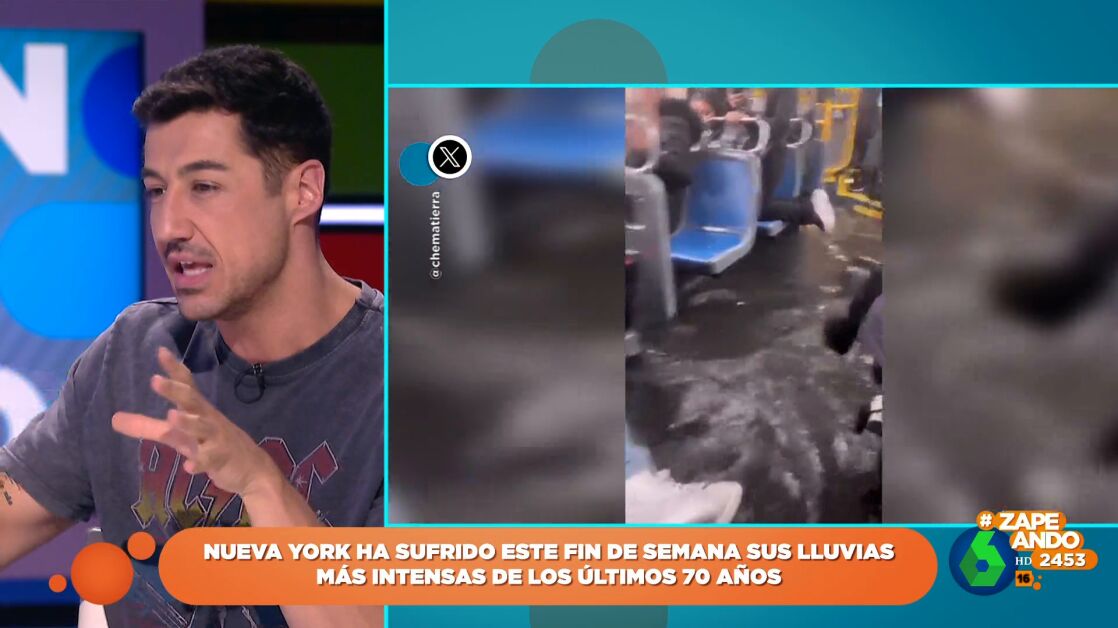 Francisco Cacho, meteorólogo de laSexta, visita Zapeando para responder a estas preguntas. Como explica, en el aeropuerto de Nueva York cayeron 220 litros en 24 horas mientras que en "pleno Manhattan cayeron 157 litros", unas cifras que han triplicado los registros con los que se contaba hasta el momento.