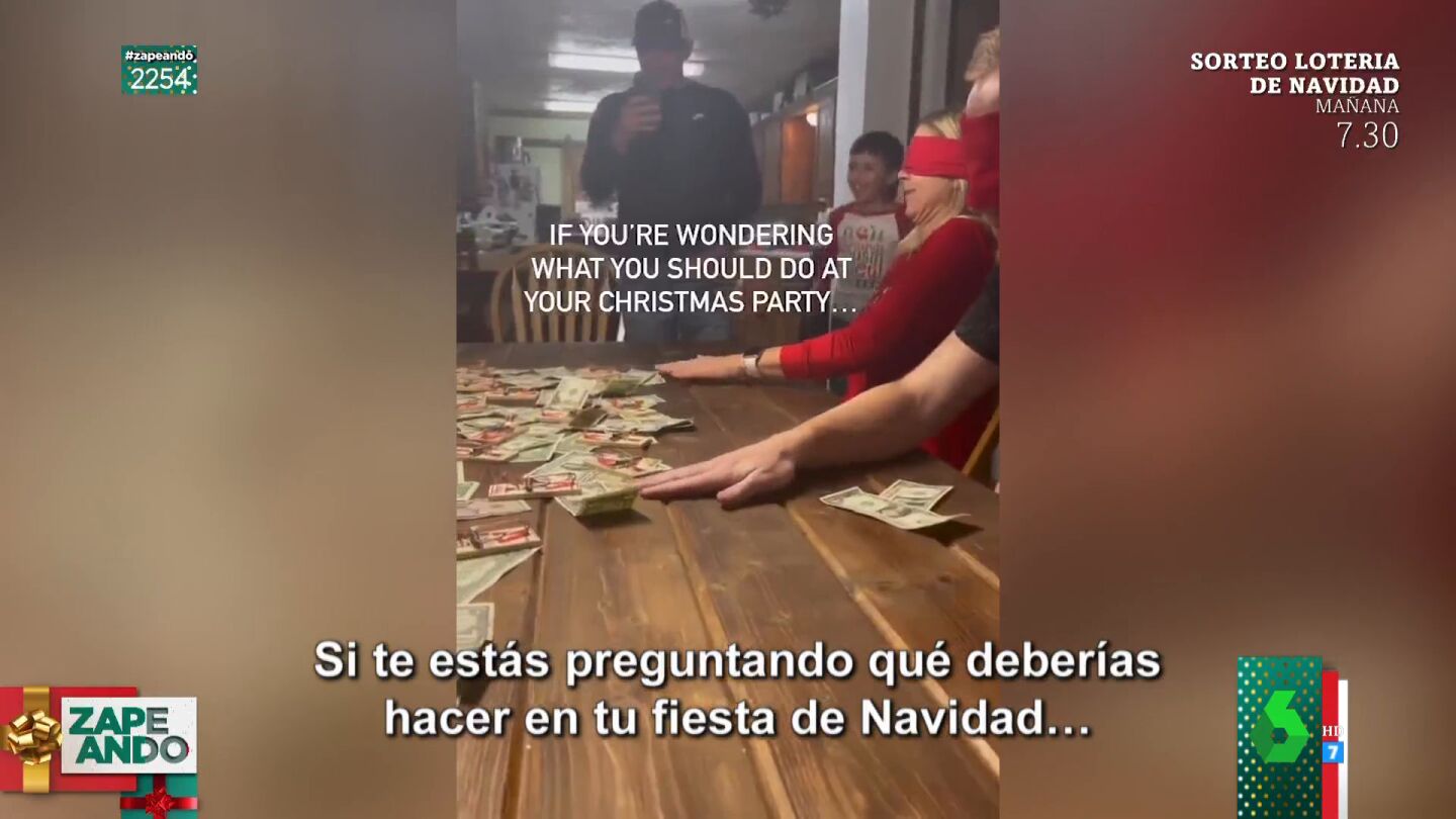 "¿No sabéis a que jugar este año en la sobremesa de la Nochebuena?", pregunta María Gómez a sus compis de Zapeando, a los que trae "la solución". "Con todos vosotros: Ganar o amputar", presenta la humorista, que muestra el vídeo viral de Twitter en el que aparece este divertido juego familiar que ayuda a descubrir quién es el "más rata de la casa".