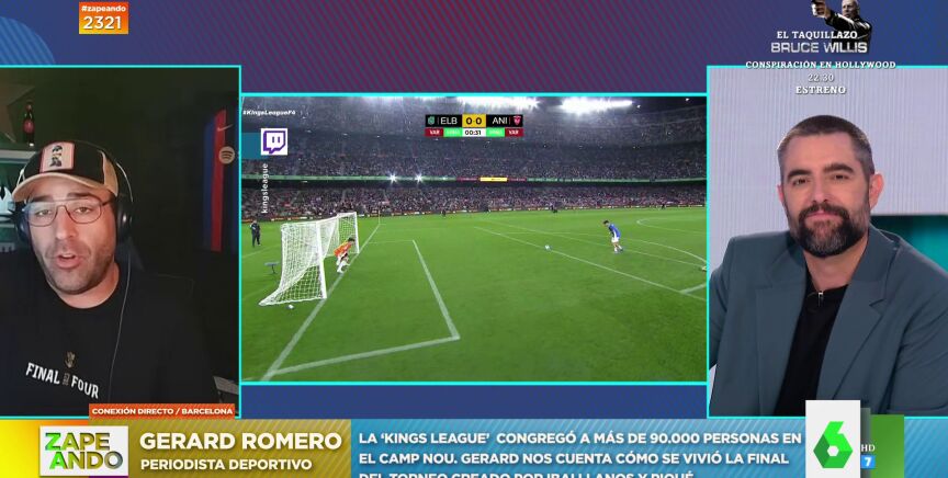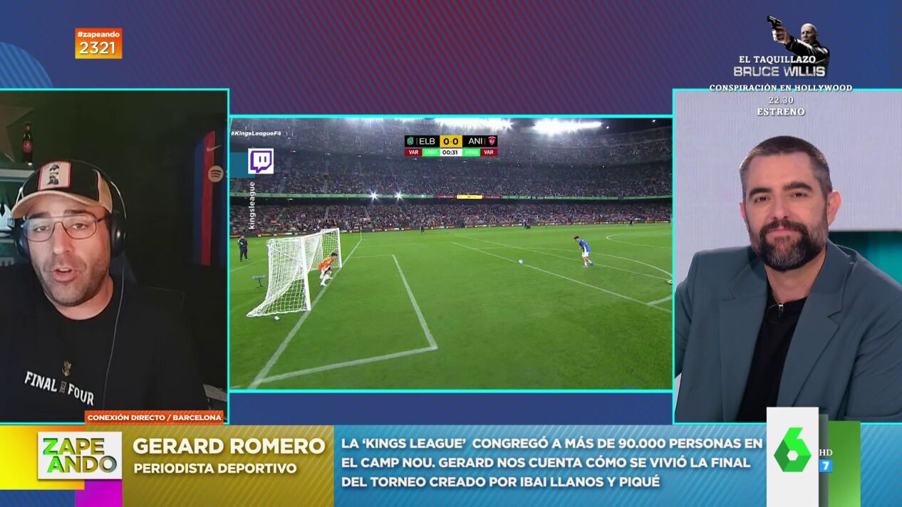 Gerard Romero comenta en Zapeando el éxito de la final de la Kings League un día después de llenarse el Camp Nou y explica en este vídeo las líneas maestras de esta competición donde combinan los videojuegos, el fútbol y el espectáculo.
