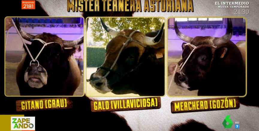 Este fin de semana Asturias ha celebrado la gala de Miss y Míster Ternera Asturiana 2022, pero tan solo uno de los tres "atractivos" toros se ha alzado con el galardón. ¿Adivinarán los zapeadores de quién se trata? "Desfila mejor que los modelos de verdad", reacciona Quique Peinado.