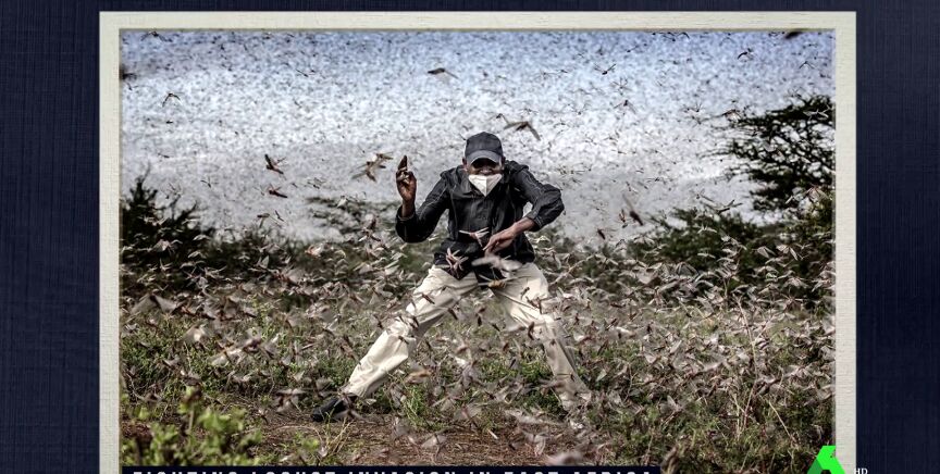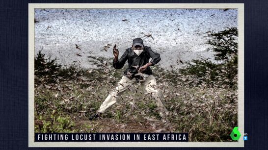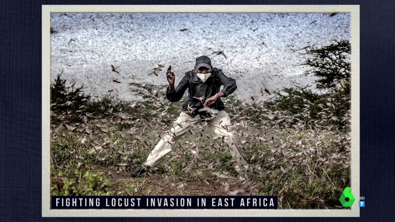 Pero esta no es la única impactante fotografía que muestra Gotzon. El zapeador destaca la lucha de un agricultor contra la lucha de langostas en el este de África. Su autor es Luis Tato, un periodista español que reside en Nairobi y que podría ser nombrado la mejor foto de prensa del año de todo el planeta. Gotzon Mantuliz te cuenta todos los detalles y te enseña más impactantes fotos en el vídeo principal de esta noticia.