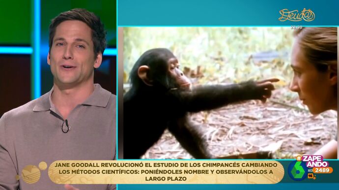 El aventurero cuenta en Zapeando cómo fue su encuentro con la primatóloga inglesa en una conferencia en Madrid y reconoce que es "un ejemplo a seguir" y para él ha sido "una motivación desde pequeño".