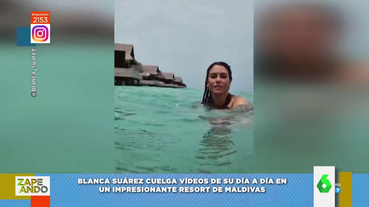 Blanca Suárez se encuentra en Maldivas disfrutando de unos días de desconexión en un hotel de "esos aburridos donde estás todo el día haciendo actividades, comiendo marisco y mirando un mar de aguas turquesas", describe Santi Alverú, que no puede sentir más envidia de las vacaciones de la actriz.