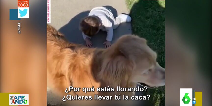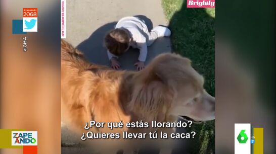 En el vídeo, puedes ver al niño llorando desconsoladamente hasta que su madre le ofrece llevar la caca de su perro, momento en el que pasa a estar "contento".