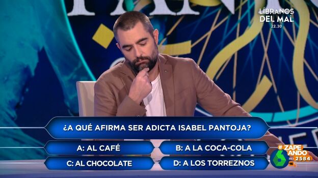 El zapeador le pregunta a Dani Mateo a qué afirma ser adicta Isabel Pantoja. Entre las opciones posibles están: café, coca-cola, chocolate o torreznos. Dani escoge café pero Miki le descubre que la folklórica, en realidad, es adicta al popular refresco.