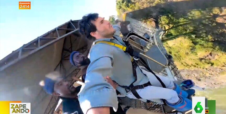 Sin embargo, uno de los instructores logró convencerlo pidiéndole que lo hiciera por "el (Real) Madrid": "No abandones, mi amigo. Hazlo para recordar este día. ¡Hala Madrid!". Puedes ver cómo acaba saltando el empresario y haciendo puenting desde 128 metros de altura en el vídeo principal de la noticia. "Se hizo caquita", comenta Berta Collado.
