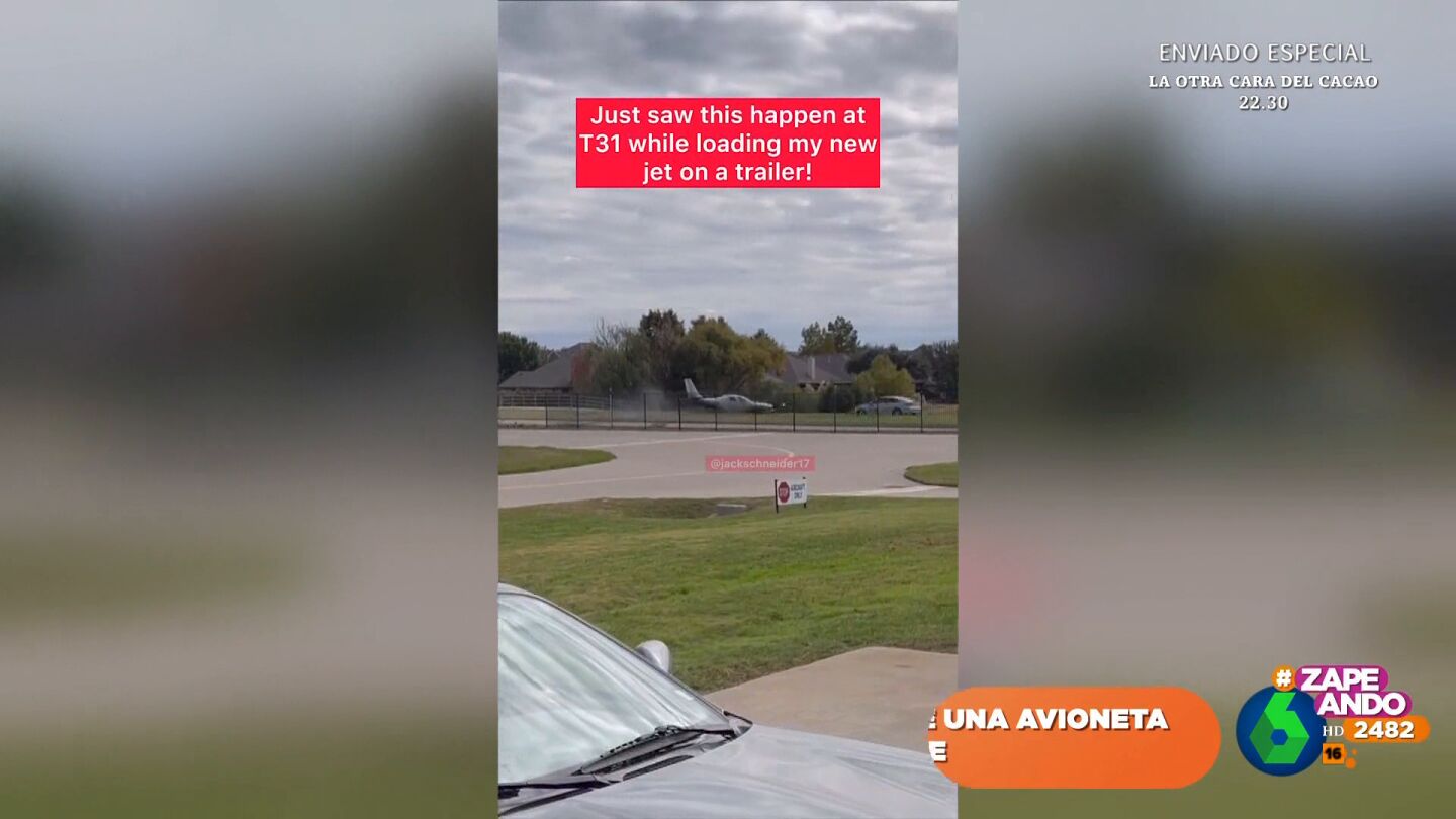 El impactante choque de una avioneta con un coche tras salirse de la pista de aterrizaje