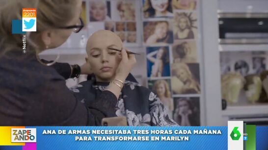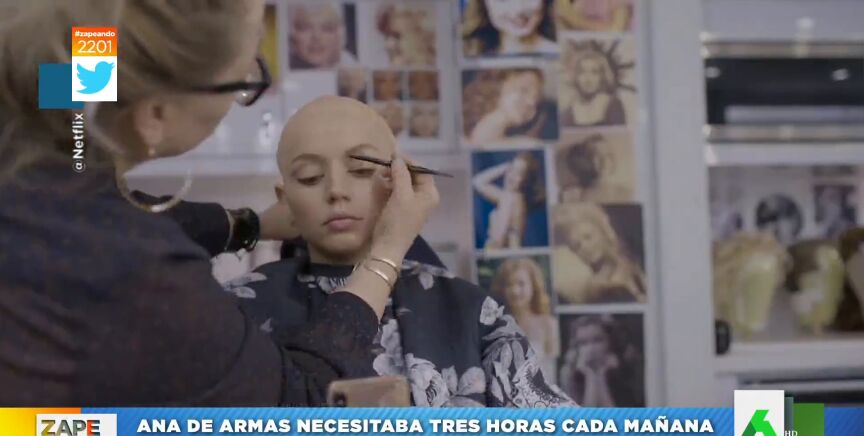 Desde decolorarse las cejas a ponerse unas pestañas azules que modificaban la forma de sus ojos, Ana de Armas se pasaba tres horas diarias en maquillaje para convertirse en Marilyn Monroe. Puedes verlo en este vídeo.