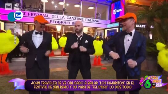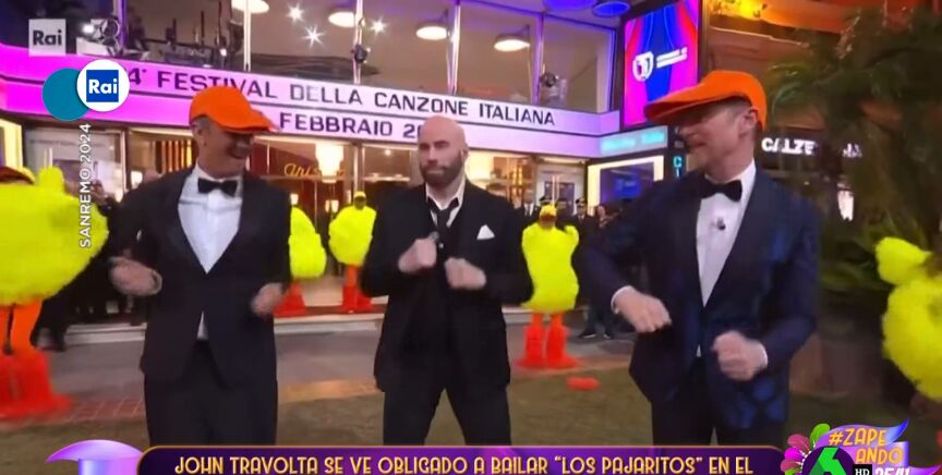 La impagable imagen de John Travolta bailando los pajaritos en el festival de San Remo de Italia