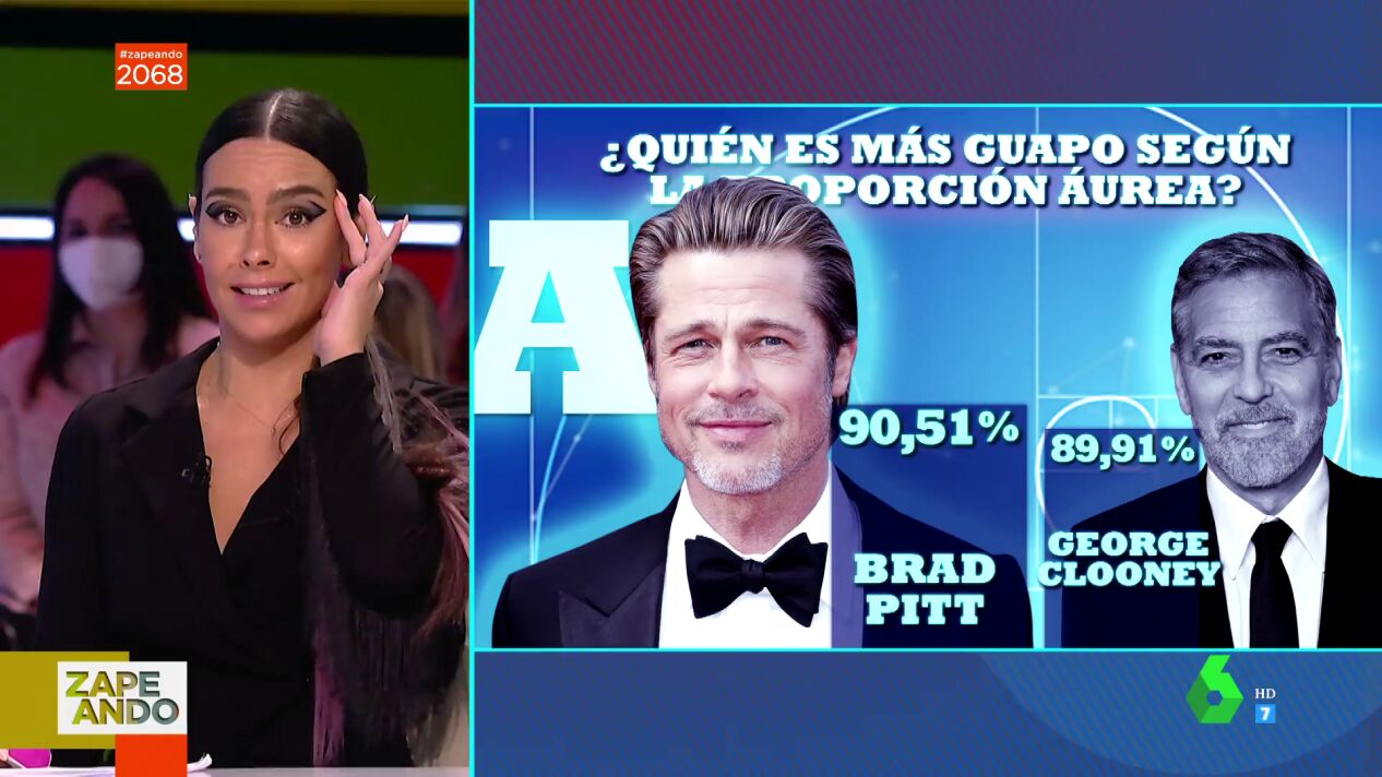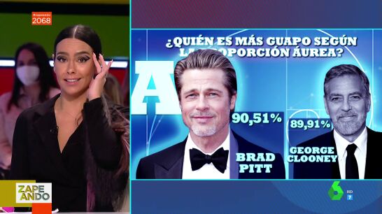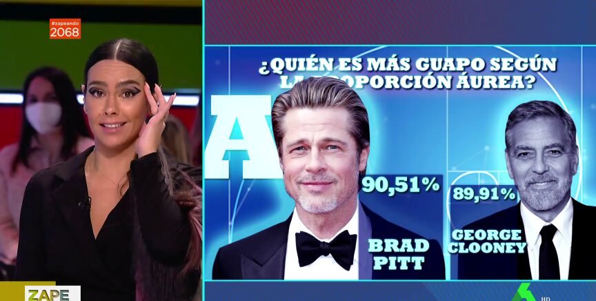 Robert Pattinson es quien lidera el ranking, ya que tiene un 92,15% de coincidencia con el canon de belleza griega clásica. Sin embargo, Pedroche no está de acuerdo con que Bradley Cooper sea más guapo que Brad Pitt. "Este señor es perfecto. A día de hoy es perfecto, pero es que tú lo recuerdas en 'Leyendas de pasión' y también", ha defendido la zapeadora,
