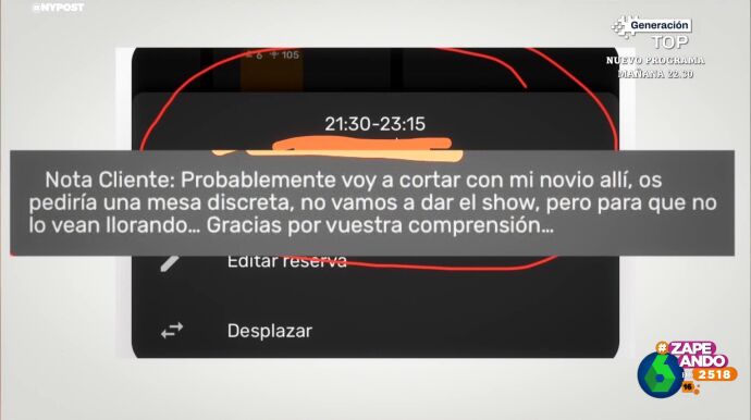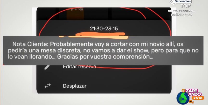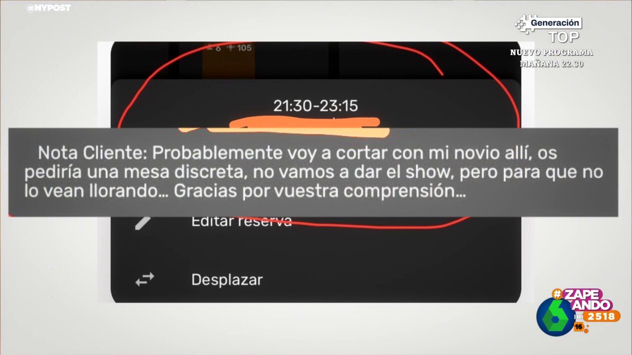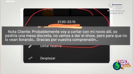 "Probablemente voy a cortar con mi novio allí. Os pediría una mesa discreta, no vamos a dar el show, pero para que no lo vean llorando", especificaba en la nota de la reserva del establecimiento. "Al final le pide matrimonio. Te agobias y al final eso remonta", comenta Valeria Ros.