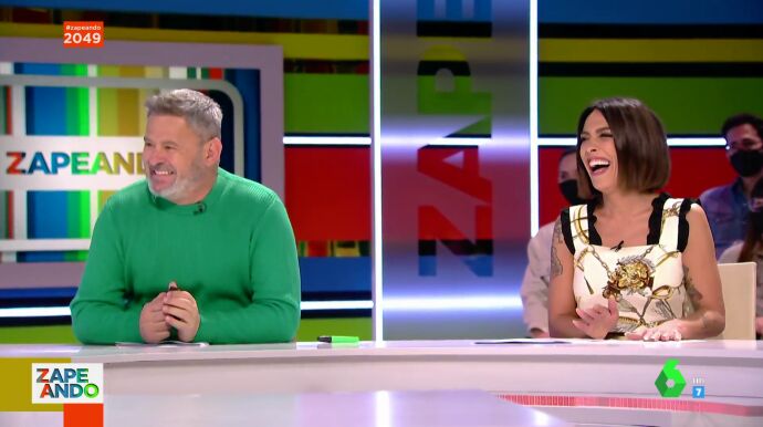Además, la zapeadora protagoniza un cómico momento al realizar un inesperado comentario que deja alucinados a Dani Mateo y Miki Nadal. "Esto es para pillar plano, porque ese comentario no vale para nada", afirma Miki Nadal a Lorena Castell, que reconoce que lo ha hecho por eso: "Me he visto buena y digo, aprovecho ahora". Puedes descubrir qué comentario ha sido y ver el cómico momento al completo en el vídeo de arriba.