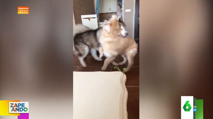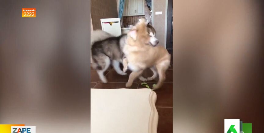 En esta nueva entrega de la sección 'Las noticias más imprescindibles contadas de la forma más trascendente del mundo', Lorena Castell muestra a sus compis de Zapeando la pelea entre dos perros que arrasa en internet por su inesperado final, que hace reír a la colaboradora porque no se lo esperaba. Y, es que, un gato aparece de la nada y da un bofetón a uno de los canes, de tal forma que acaba con la pelea que se había desatado segundos antes.