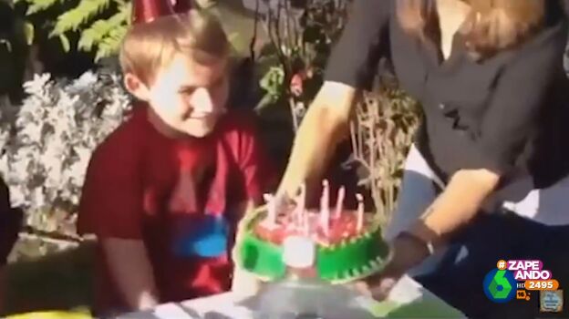 Un niño está a punto de soplar las velas de su tarta de cumpleaños y mientras pide un deseo, aparece de repente un joven que se abalanza sobre la mesa y vomita sobre el pastel. Puedes verlo en este vídeo de Zapeando.