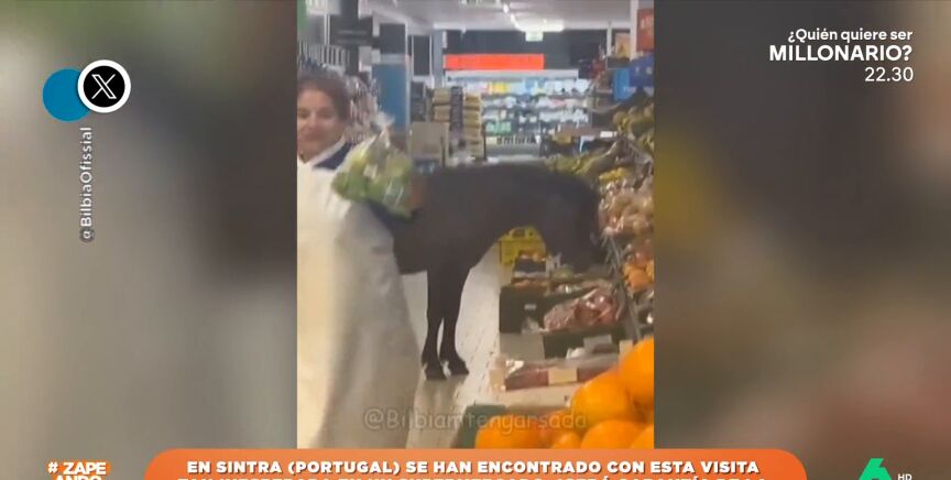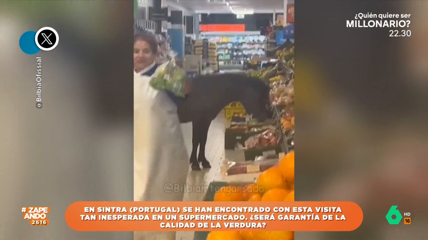 Un poni se cuela en un supermercado de Sintra, en Portugal, al que descubren rondando la sección de las verduras. "Puede que sea un gorrón, pero es sano", comenta Cristina Pedroche.
