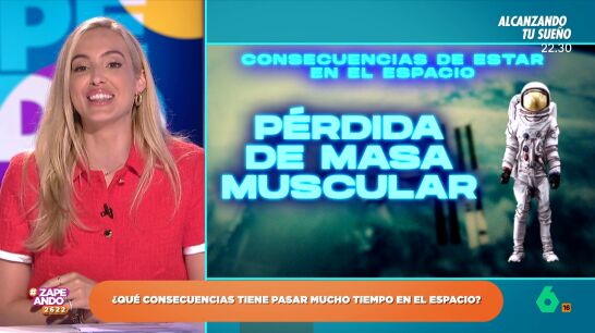 Pero, ¿qué consecuencias tendrá para el cosmonauta permanecer tantos días en el espacio? Como explica Isabel Forner, en el espacio se pierde más del 1% de masa ósea al mes. "Te quedas en el chasis, pierdes hueso", afirma la zapeadora. Otro de los efectos, positivo según Isabel, es que aumentas de altura. "Por la ausencia de gravedad creces y vuelves más alto a la tierra", explica.