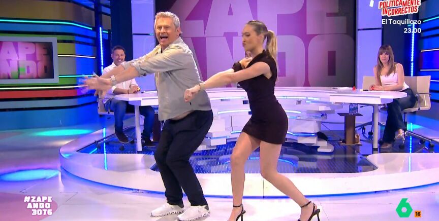 Isabel Forner y Miki Nadal han estado muy atentos a las instrucciones de la artista y se han animado a imitar el baile viral. En un primer intento la zapeadora se lía un poco, pero, al volver a sonar la canción, mejora un poco su primer intento. "Es el flow que tenemos, no cómo bailemos", afirma Isabel.