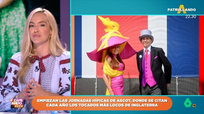 El tocado favorito de Isabel es la pamela de caramelos con mensaje románticos. "Esta ha ido más por los caballeros que los caballos", explica. La zapeadora se confiesa muy "pro tocados": "Hacen a la mujer super elegante".