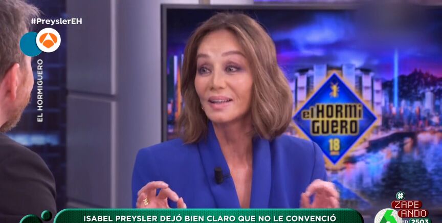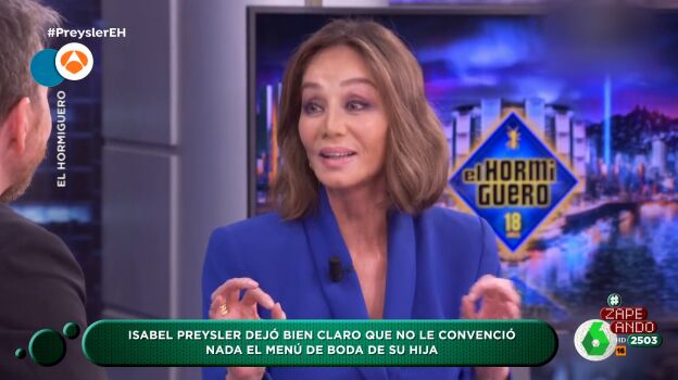 Isabel Preysler ha visitado El Hormiguero para presentar el documental que ha estrenado en una conocida plataforma de streaming. Durante la entrevista criticó duramente junto a Pablo Motos el menú que Tamara Falcó preparó para su boda con Íñigo Onieva. "Digamos que no le han puesto 5 estrellas", avanza Miki Nadal a sus compañeros de Zapeando.