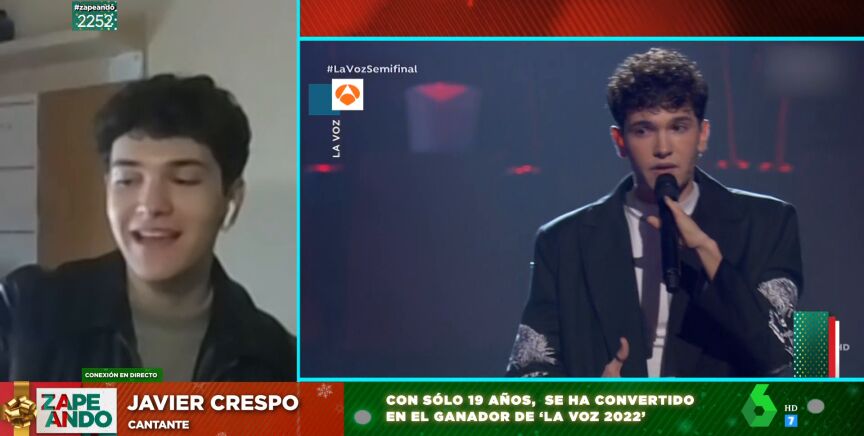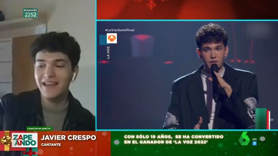 "Es un crack, joven, guapo y con talento, somos almas gemelas", bromea el presentador de Zapeando al presentar a Crespo. "Estoy organizando la cabeza con todo lo que pasó el viernes porque fueron un montón de emociones", explica Crespo, que afirma que está poco a poco aterrizando en esa nube en la que sigue estando. Pero, ¿es consciente de lo que ha logrado? ¿se veía ganador? El cantante responde a todo en el vídeo principal de esta noticia, donde explica que el éxito de su concurso se basa hacer versiones de temas conocidos: "Escuchar canciones del día a día es lo que mola".