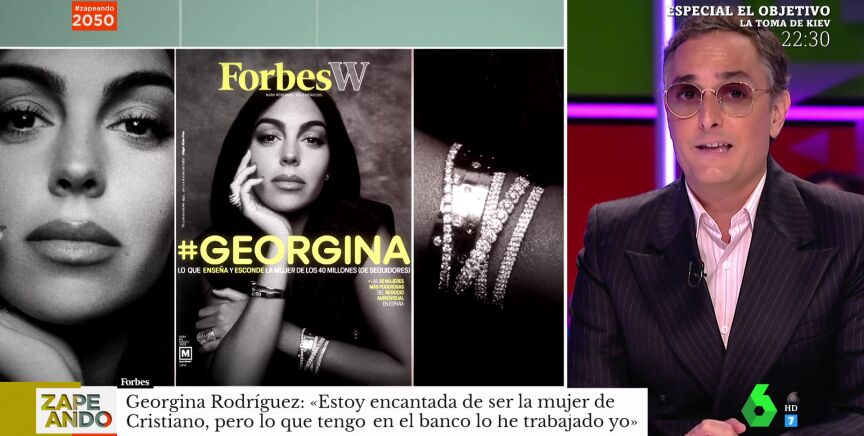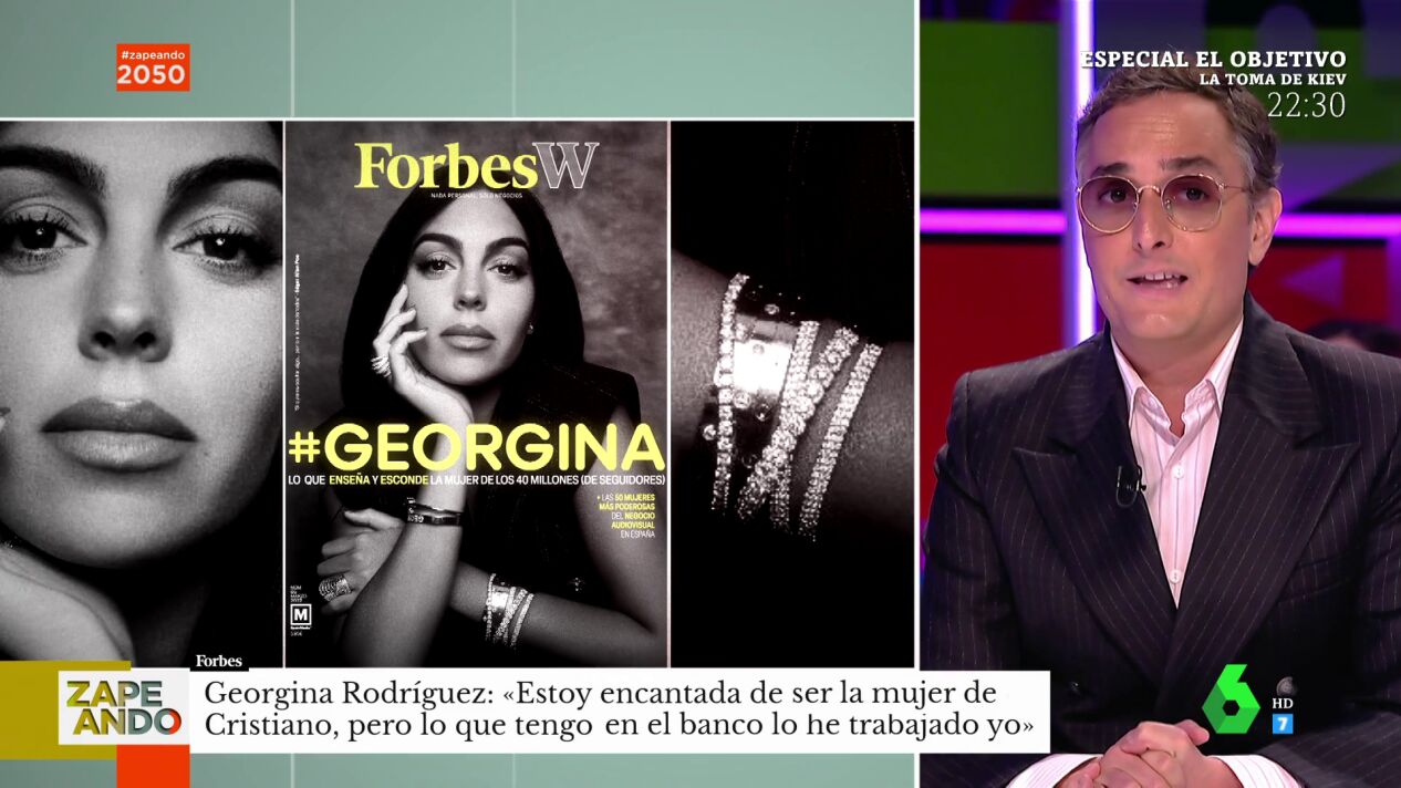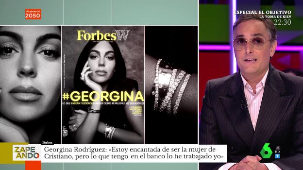Josie visita el plató de Zapeando para analizar una de las mujeres del momento y una de sus grandes amigas: Georgina Rodríguez. La pareja de Cristiano Ronaldo protagoniza la portada de la revista 'Forbes', especializada en negocios y financias. Y es que a la modelo negocios no le faltan: además de sus contratos como modelo, es embajadora de una firma de joyas, tiene una marca de ropa deportiva y es administradora de una clínica de injertos capilares.