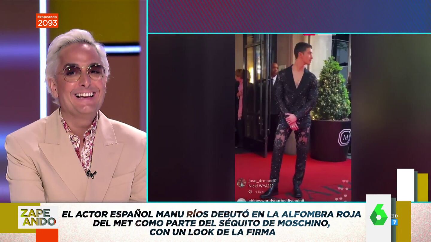 Josie analiza en este vídeo de Zapeando los looks más llamativos de la Gala Met 2022, donde Rosalía fue una de las famosas más destacadas. Pero no fue la única española que acudió al esperado evento. En la alfombra roja también pudimos ver a otro español, el actor Manu Ríos, conocido por las series 'Élite' y 'La edad de la ira'. El joven debutó en la Gala Met de este año con mucho estilo al llevar un esmoquin negro con tul bordado y cristales. "Más de uno ha dicho que Manu fue el Timothée Chalamet en cuanto a estilo este año", afirma Quique Peinado.