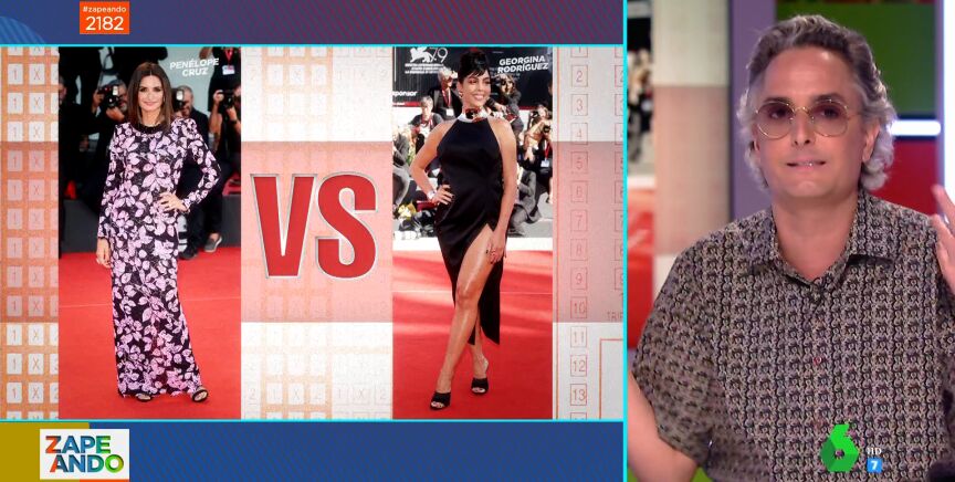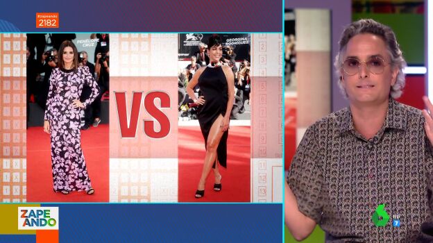 Josie visita el plató de Zapeando para analizar los looks más llamativos vistos en la alfombra roja del Festival de Venecia. Para ello, Dani Mateo le propone realizar una divertida quiniela sobre los estilismos de varios famosos. En concreto, Cristina Pedroche le muestra los looks elegidos por Penélope Cruz y Georgina Rodríguez y el experto en moda tiene que decir quién gana el partidazo del estilo.