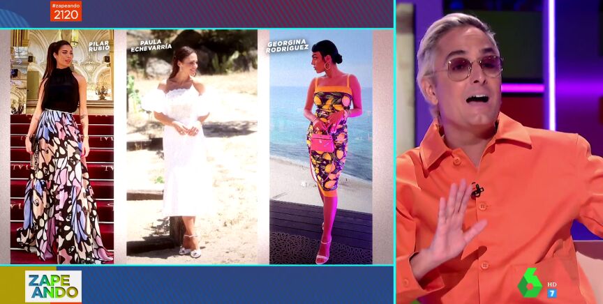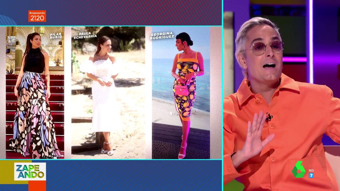 Lorena Castell muestra a Josie en el plató de Zapeando los looks que Pilar Rubio, Paula Echevarría y Georgina Rodríguez han elegido para ir de "saraos". "Me tengo que abanicar", confiesa Josie, que se muestra muy indignado al ver el look de Pilar Rubio en la boda de su excuñada, Vania Millán. "¿Es que estoy en 1972? ¿este es el Chanel con el que sueña alguien? ¿con esa falda de campesina?", pregunta alucinado Josie, que manda un mensaje a Pilar Rubio: "¿Quién te aconseja?, tienes que venir a Zapeando".