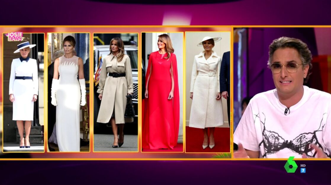 El experto en moda de Zapeando Josie ha opinado sobre las tendencias en moda de la semana y no ha dudado en cargar contra Melania Trump por sus conjuntos 'a lo Lady Di' que ha llevado en su visita a Reino Unido.