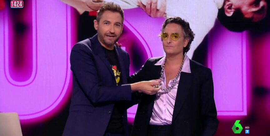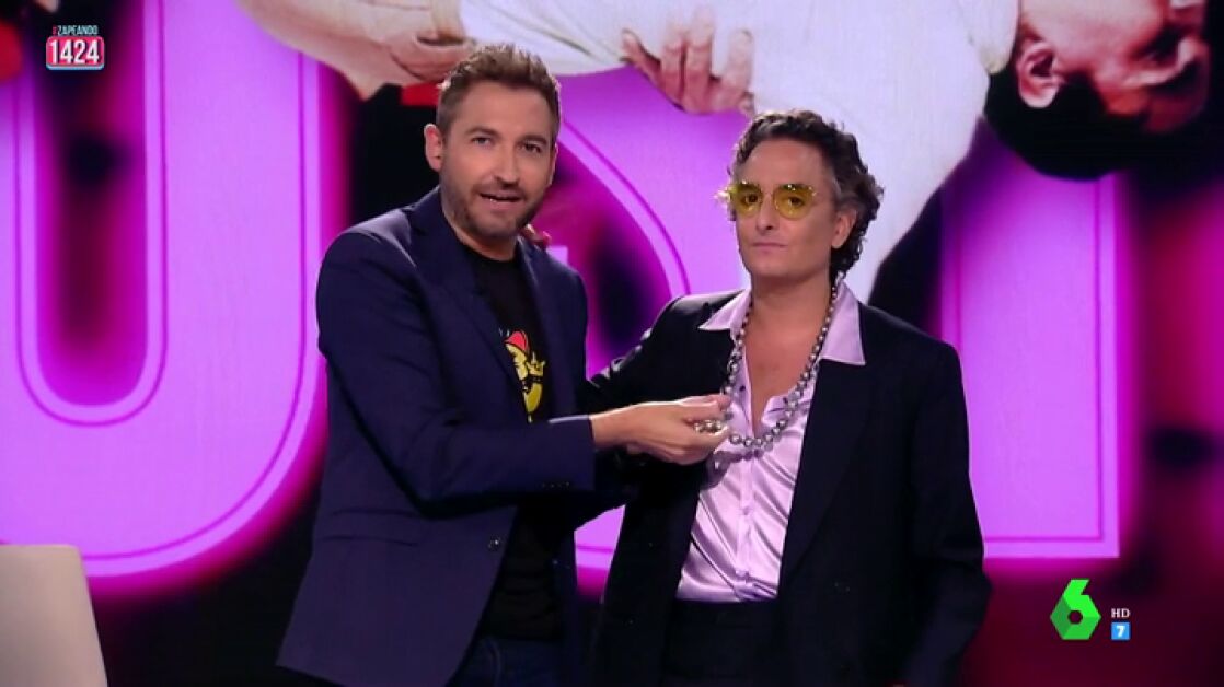 Ana Morgade se sincera sobre el look del estilista: "Entre el collar, las gafas y las solapas estas a un cardado de pelo de ser Disco Stu, el de los Simpsons". Algo que el zapeador encaja con mucho humor: "Llevo agua de mar en el pelo".