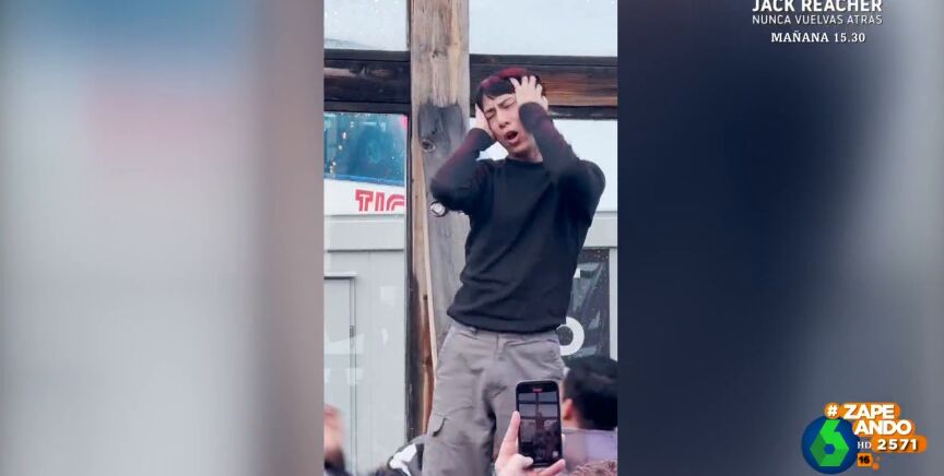 Berta Collado muestra un vídeo, que se ha hecho viral, protagonizado por dos chicos que están disfrutando de un día en la nieve pero, en lugar de esquiar, están más entretenidos en la zona de fiesta de la estación de esquí.