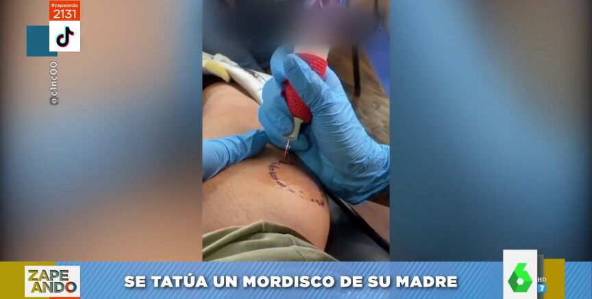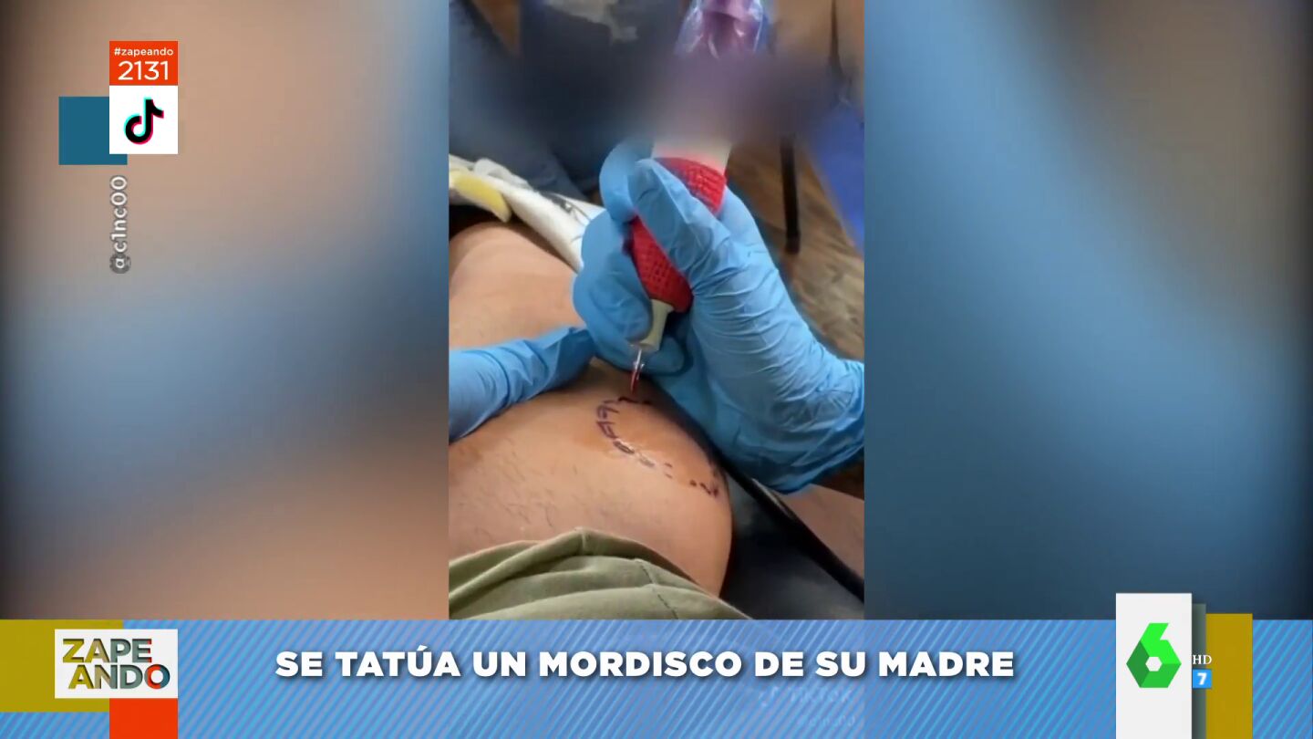Un joven se vuelve viral en redes después de tatuarse el mordisco de su madre en una pierna. Puedes ver, en este vídeo de Zapeando, su resultado y la 'dolorosa' preparación.