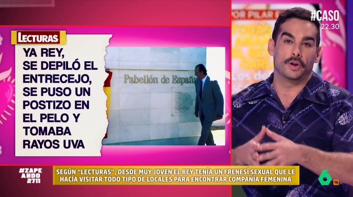 En esta ocasión, el colaborador explica los trucos de belleza que seguía el rey emérito para aparecer siempre impecable. "Según Pilar Eyre, cuando murió Franco, él dijo '¡Ancha Castilla!'" Y modificó parte de su imagen.