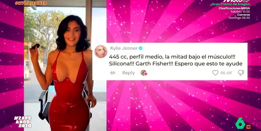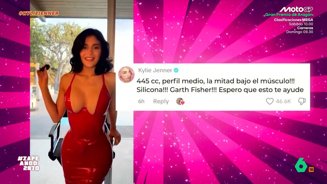 "Muy amable ella dio los centímetros cúbicos exactos de sus implantes, el material, el lugar dónde los lleva y hasta el nombre del médico que se los puso", comenta María Gómez. "Menos mal que le preguntó por el pecho y no por su última citología", añade. "Ay que ver Kylie Jenner, tiene tan poco reparo en compartir su información personal que las cookies de privacidad ya ni le saltan", añade Nacho García.