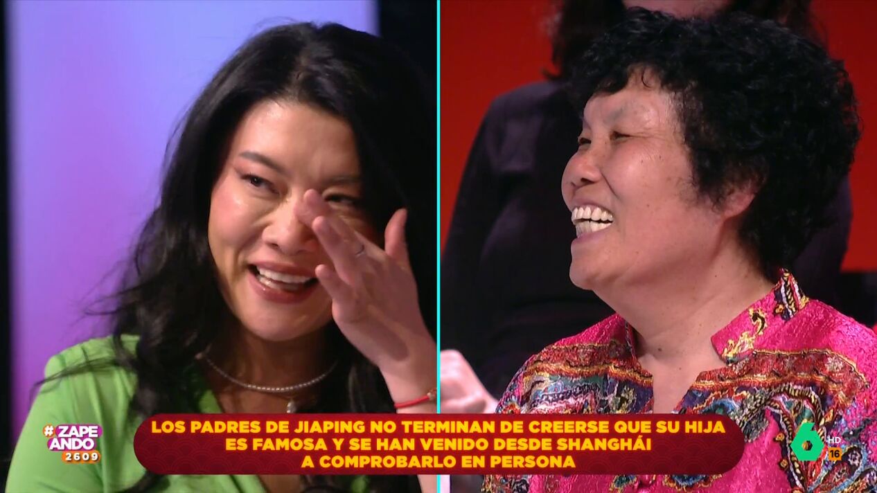 Los padres de Jiaping visitan el plató de Zapeando para dar una sorpresa a su hija y conocer, de primera mano, qué hace en el programa. Miki Nadal intenta hablar en chino y les pregunta si se imaginaban que iban a tener una hija famosa. "Yo voy a traducir lo que me gustaría", advierte la colaboradora todoterreno. Según ella, su padre ha respondido que "siendo su hija única no tenían mucha esperanza, aunque querían que viera ese mundo". Tras esto, le advirtieron que "tener éxito o no es una cosa subjetiva", pero que "lo más importante era que fuera feliz".
