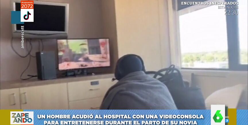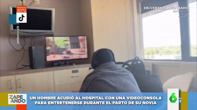 "Hay partos que se alargan muchísimo y sin duda la peor parte se la llevan las madres, pero esa espera también se hace durísima para los padres", comenta Miki Nadal antes de dar paso a su vídeo viral, que ha encontrado en Tik Tok. En él un futuro papá está jugando a la videoconsola mientras espera a que su pareja dé a luz. "Iba preparado por si el parto se alargaba un poco", explica Miki Nadal a la misma vez que muestra cómo se llevó hasta una pantalla para jugar.