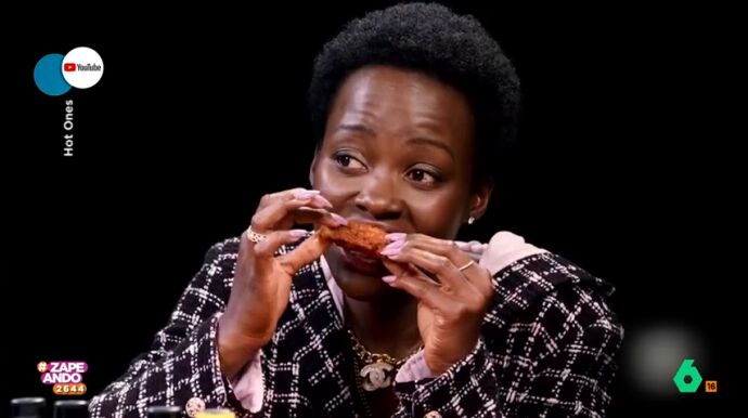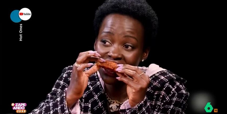 Lupita Nyong'o se ha animado a participar en el programa de entrevistas americano 'Hot Ones'. La mecánica es sencilla: mientras le hacen preguntas debe ir probando alitas de pollo con diferentes tipos de salsas picantes en las que el pico va de menos a mas. Pero la actriz, desde la primera pieza de pollo, comenzó a sufrir.