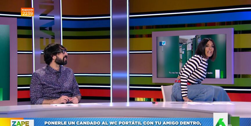 "Solo tienes que esperar a que uno de tus colegas vaya al baño portátil, ponerle un candado y cerrarle allí", explica el presentador, que pide a los colaboradores que cuenten si tienen alguna experiencia con un baño portátil. Y, como no, Lorena Castell tiene una. Descúbrela en el vídeo de arriba.