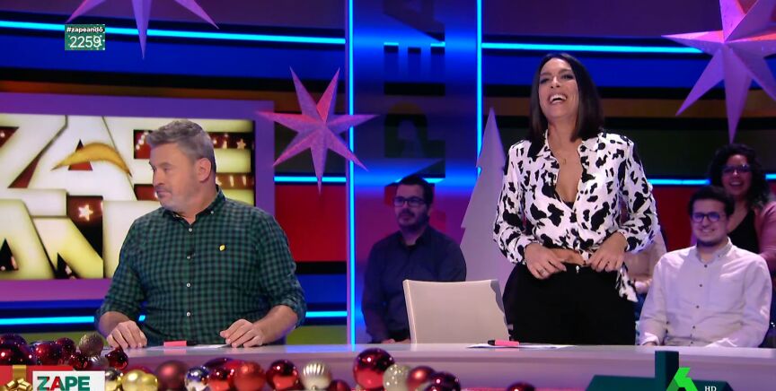 Las comidas de Navidad están pasando factura a los zapeadores. Miki Nadal llega con la camisa entallada y Lorena Castell se pone de pie en este vídeo para mostrar que se ha tenido que quitar un botón del pantalón.