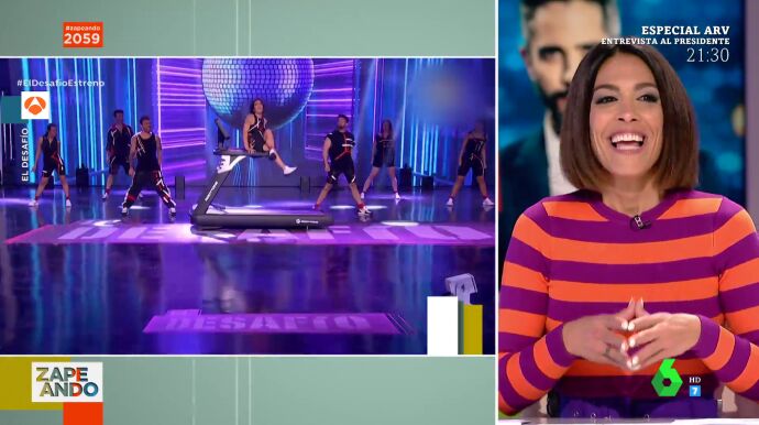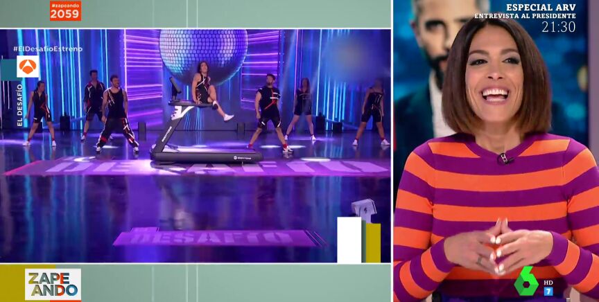 Y es que a la zapeadora le tocó algo tan "arriesgado" como bailar en una cinta de correr, ironiza Quique Peinado, que muestra el momentazo en el vídeo de arriba: "Muy bien, tú paseando por la cinta de andar esta y Raquel Sánchez Silva jugándose la vida con la apnea". Puedes ver la reacción de Lorena ante las risas de sus compañeros por la dificultad de su prueba en el vídeo principal de esta noticia: "Me hice muchísimo año, me escupió la máquina por lo menos cinco o seis veces, me caí muchas veces haciendo esa voltereta".