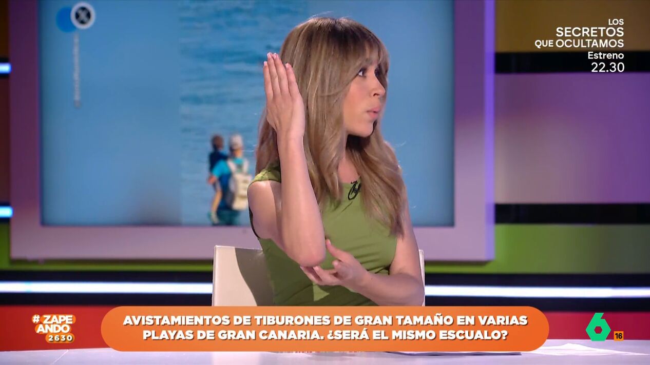 María Gómez se anima a compartir lo más "chungo" que ha visto en la playa. "¿Habéis visto alguna vez una carabela portuguesa?", pregunta la zapeadora. "Parece como un tiburón pero en el agua", añade. "Hombre, eso de un tiburón...", responde Dani.