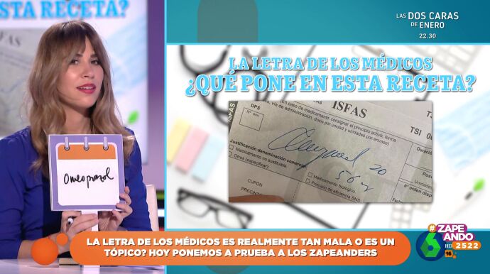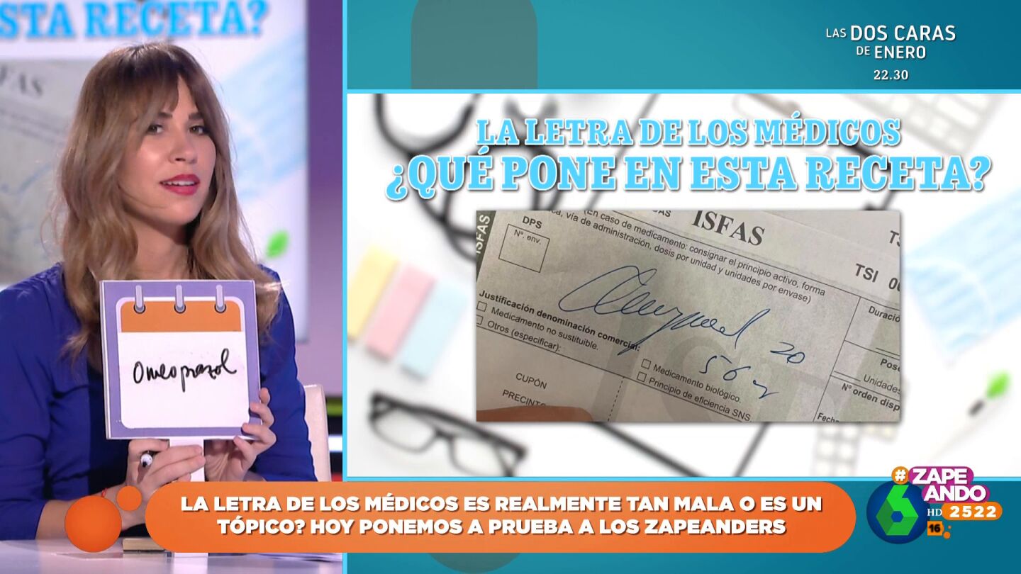 Cristina Pedroche propone un concurso en Zapeando. Intentar adivinar qué medicamento hay escrito en una receta con letra de médico casi ilegible. ¿Qué fármacos serán? ¿Es la letra de médico un mito o realidad? Las respuestas, en este vídeo.