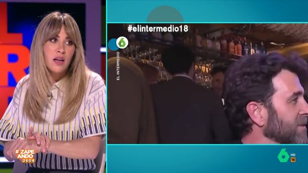 "Si hacemos zoom, detrás de Gonzo, en la barra, están la ministra Pilar Alegría, del PSOE, el diputado del Partido Popular, Borja Sémper, y el diputado de ERC, Gabriel Rufián juntos tomándose una copita de 'jijis' y de 'jajas'", cuenta Quique. "Tres políticos de tres partidos que están todo el día diciéndose barbaridades, brindando tan amigos", añade Peinado.