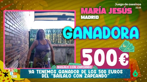 El zapeador extrae de la urna el número 256. La protagonista del vídeo es María Jesús y es de Madrid. La espectadora no puede esconder su alegría al descubrir que ha conseguido ganar el premio de 500 euros. "Como nos pillas cerca ahora vamos a dártelo en persona", le dice Nacho.