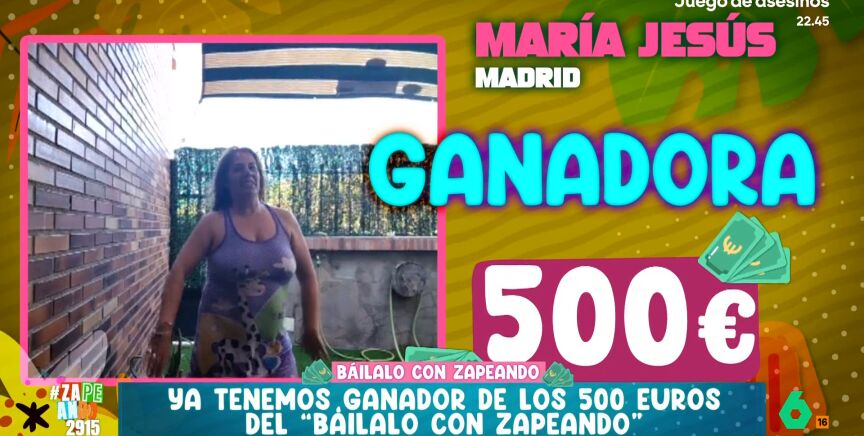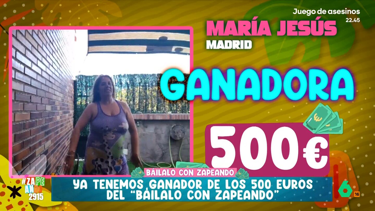 En su vídeo, se puede ver a María Jesús en su terraza bailando la popular canción. "Confiesa", le dice Miki, "¿quién te estaba grabando?". "Lo estaba grabando mi nieto", cuenta la espectadora. María Jesús explica que con el premio irá de vacaciones y llevará a sus nietos a merendar una hamburguesa.